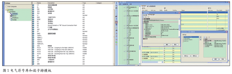 工程数据库创建与图纸标准化。与AutoCAD绘图方式不同,开展数字化设计之前,首先要建立工程数据库。工程数据库主要包括电气符号库、电缆型号库和产品型号库,如图1所示。工程数据库的建立,一方面为工程数据信息的实时入库做好了准备,另一方面也保证了电气符号和设备选型的标准化,为实现电气二次标准化设计提供了保障。通过设置各类数据的显示样式,建立报表模板和端子排模板,能实现工程出图内容和出图样式的和谐统一,避免由于设计人员个人风格所导致的图纸差异,实现电气二次图纸的标准化。